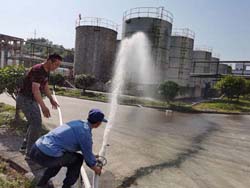 根據(jù)企業(yè)應(yīng)急預(yù)案要求及安全計劃安排,安全上樹立憂患意識,做到常備不懈;5月12日公司安環(huán)部組織當班操作工、動力部安環(huán)部、生產(chǎn)部、倉管人員進行重大危險源噴泡沫應(yīng)急演練。